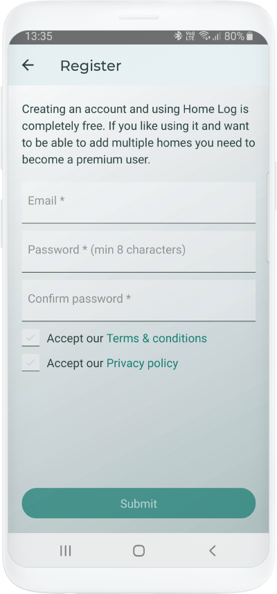 Using an account is mandatory in Home Log and all information you enter are saved to your account.
