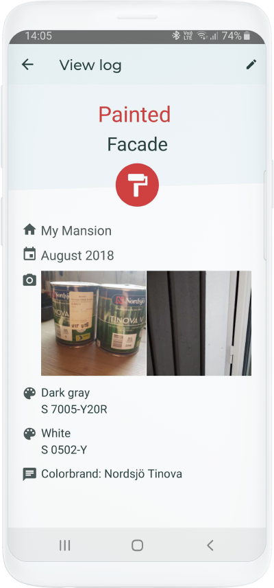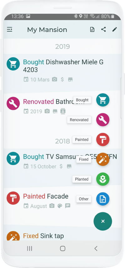 Select type of log first, available is Bought, Renovated, Painted, Fixed, Planted or Other.