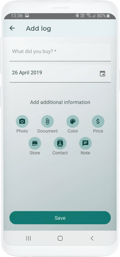 You can also add additional information such as Photos, Documents, Colors, Prices, Stores, Contacts or Notes.